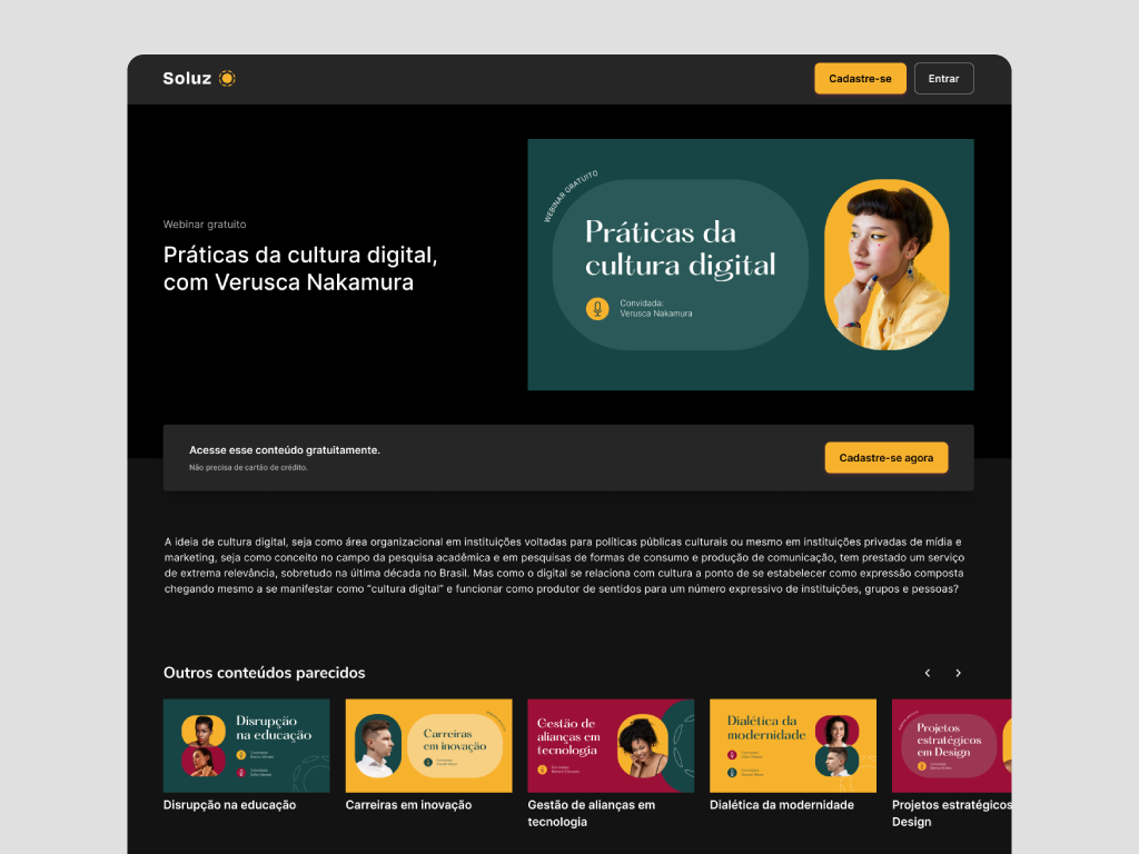 Sou uma Designer movida por inovação, arte e tecnologia, impulsionada pelo propósito de criar experiências significativas para as pessoas. Com formação em Design Gráfico e 5 anos de atuação em design para os meios digitais, desenvolvi uma boa compreensão da interseção entre visual e funcionalidade.